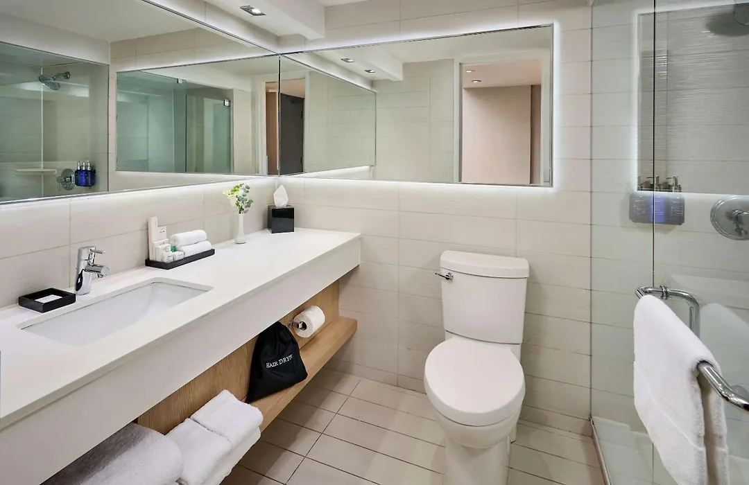 Le camere del Radisson Blu Toronto Downtown sono caratterizzate da uno scrittoio, nonché da finestre insonorizzate per la comodità degli ospiti. I bagni sono dotati di una cabina doccia e un bagno con WC separato, oltre ad asciugacapelli e cuffie per la doccia.